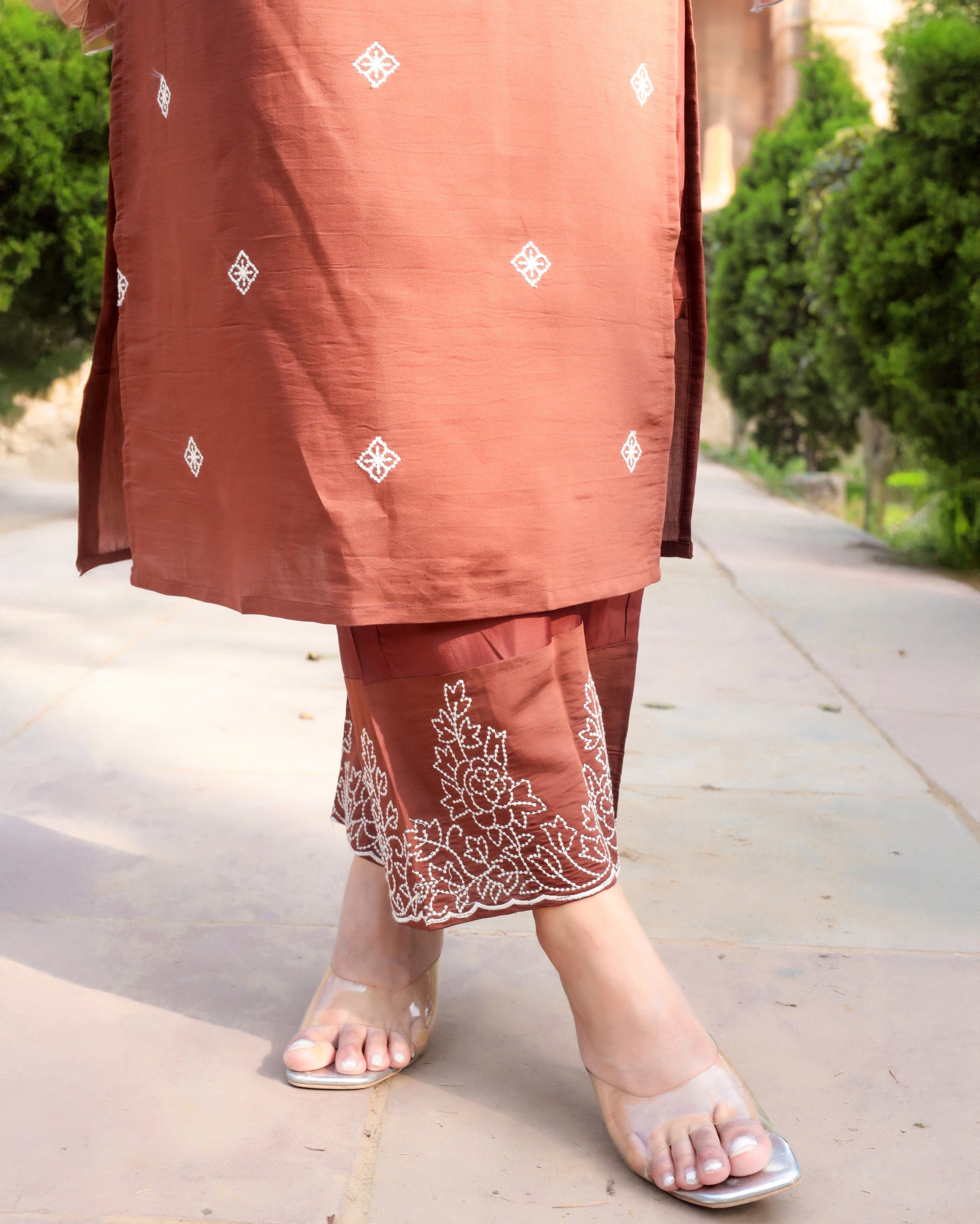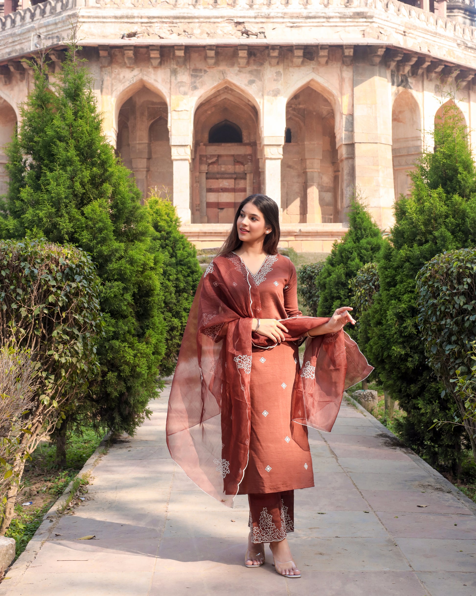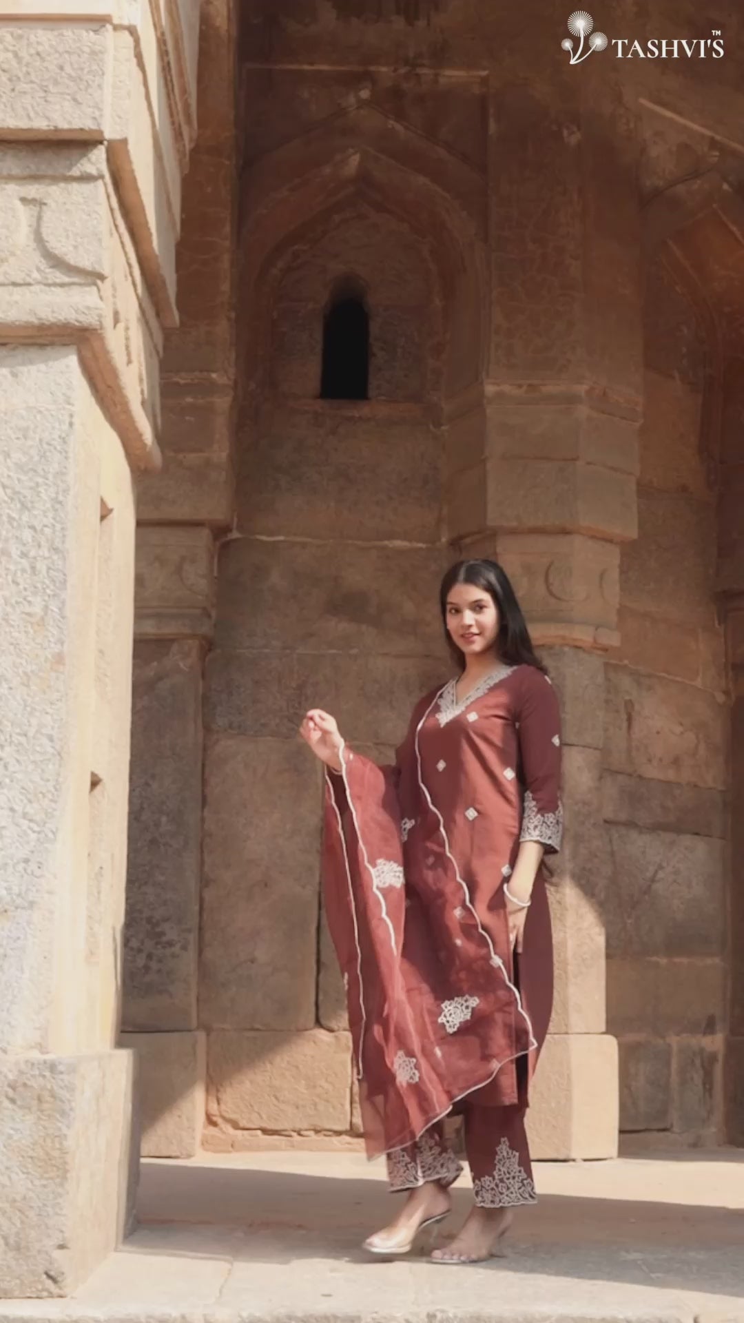 Designer Brown Embroidered Viscose Suit set with dupatta